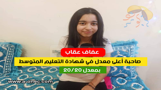 كشف نقاط التلميذة عقاب عفاف صاحبة المرتبة الأولى وطنيا بمعدل 20/20
